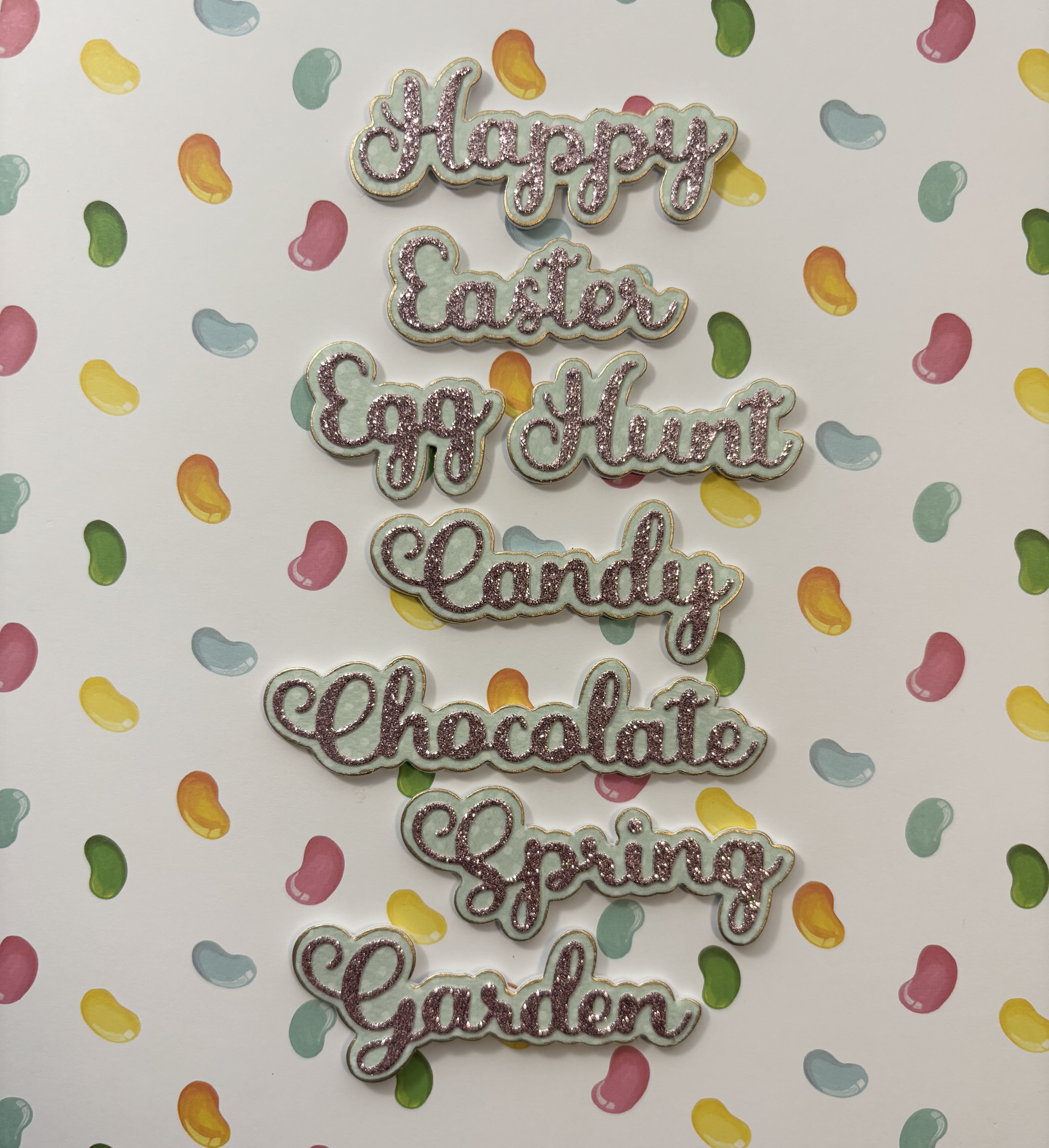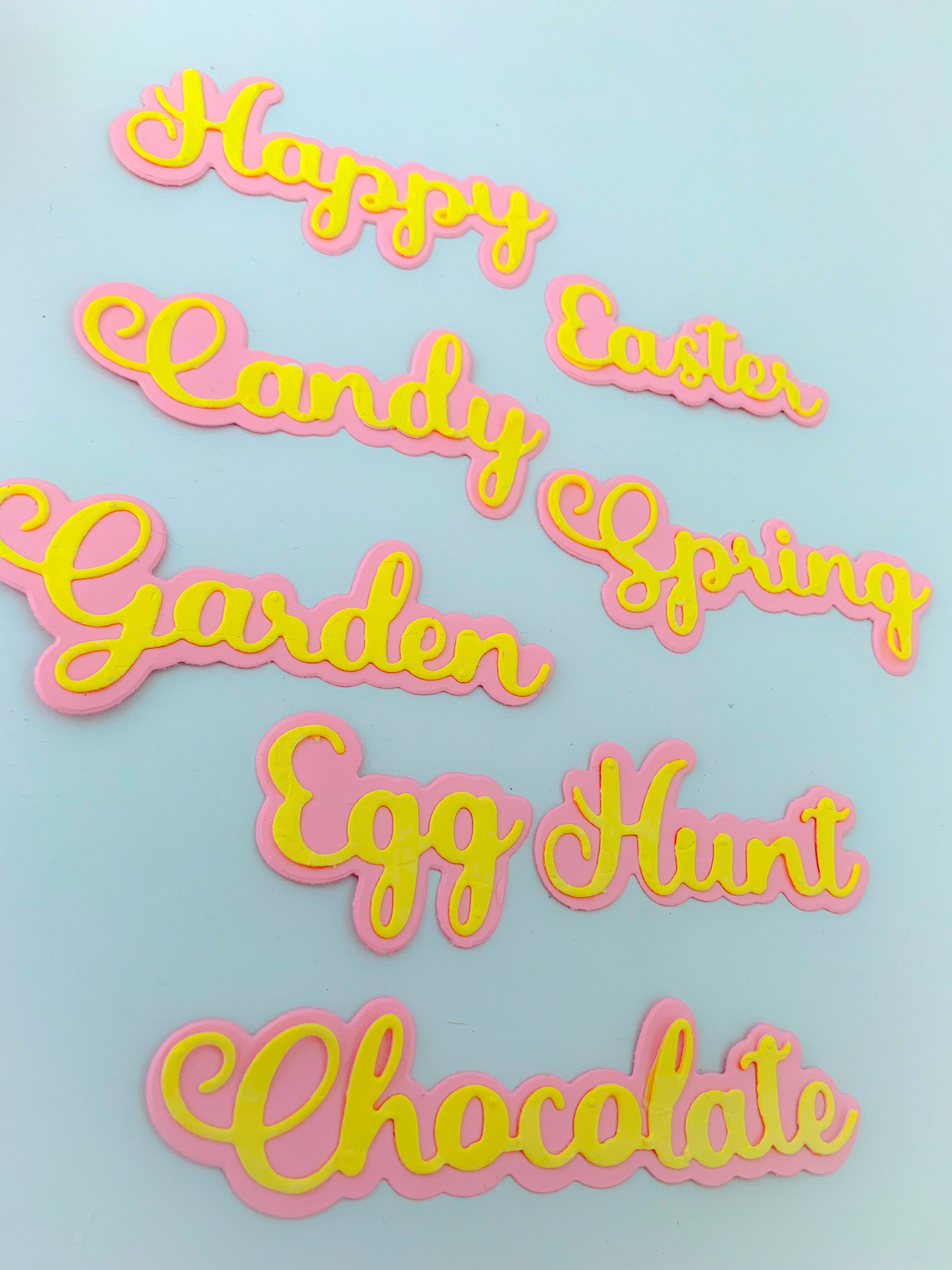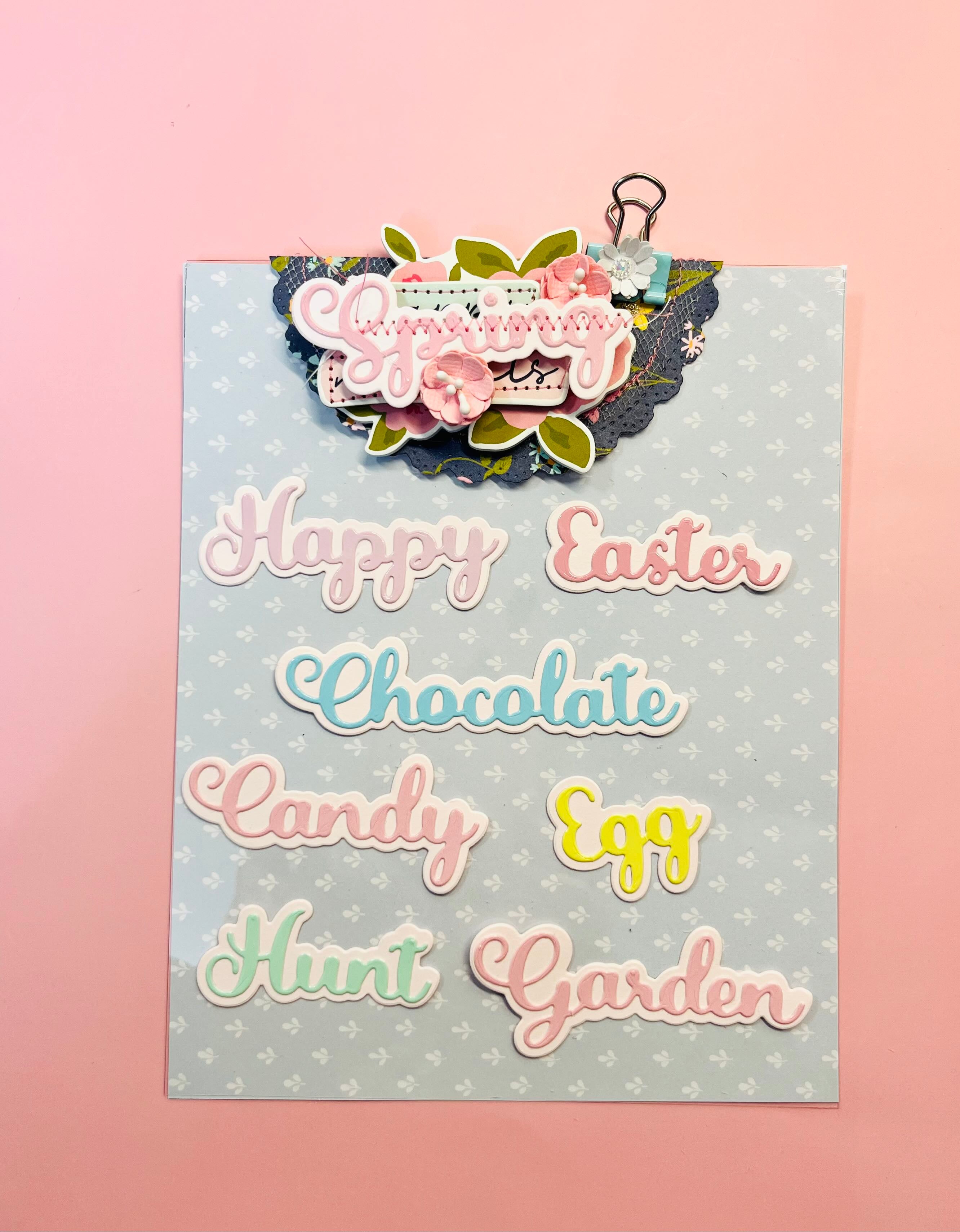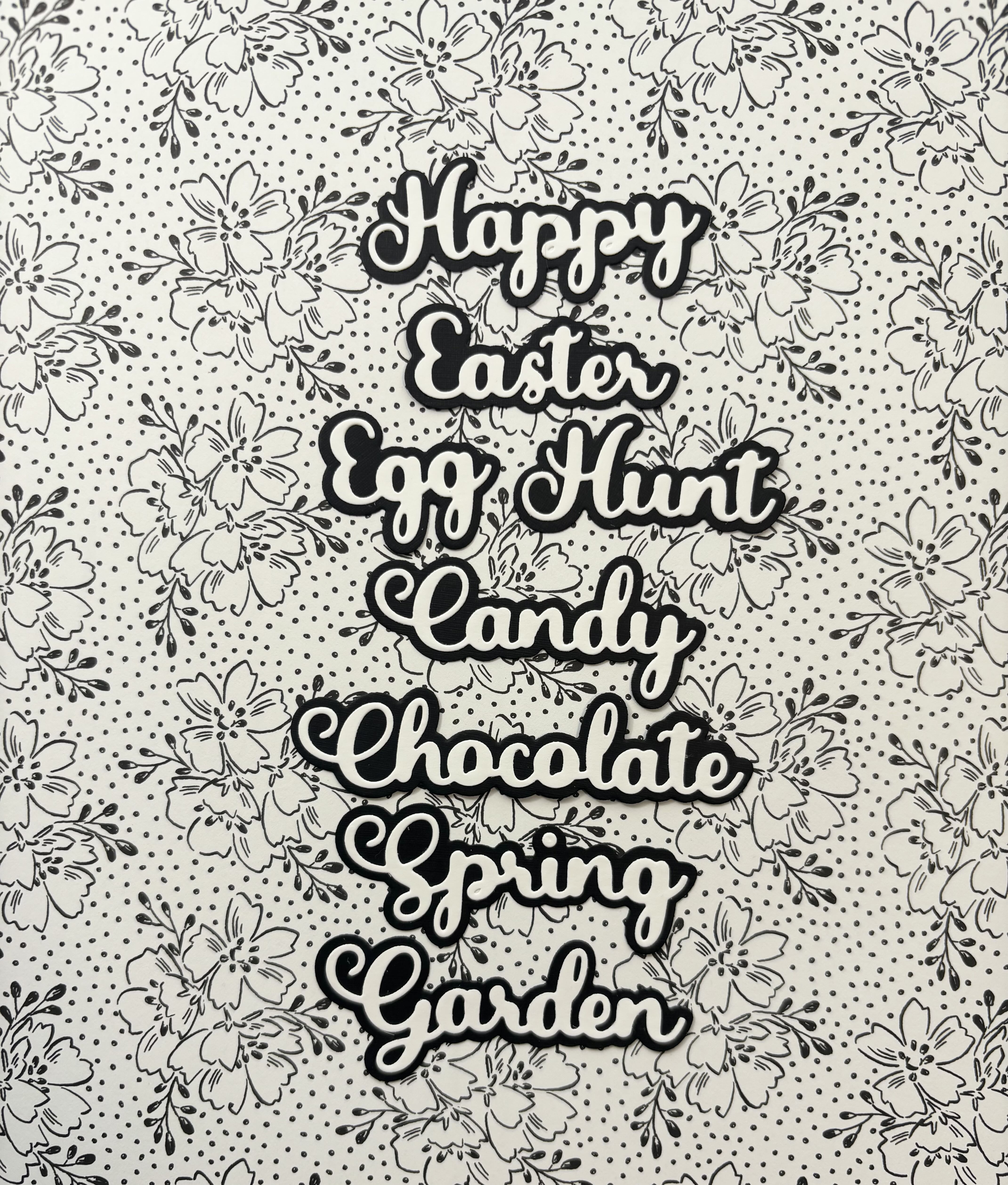 8 Words read: Happy Easter, Candy, Garden, Egg Hunt, Chocolate, Spring