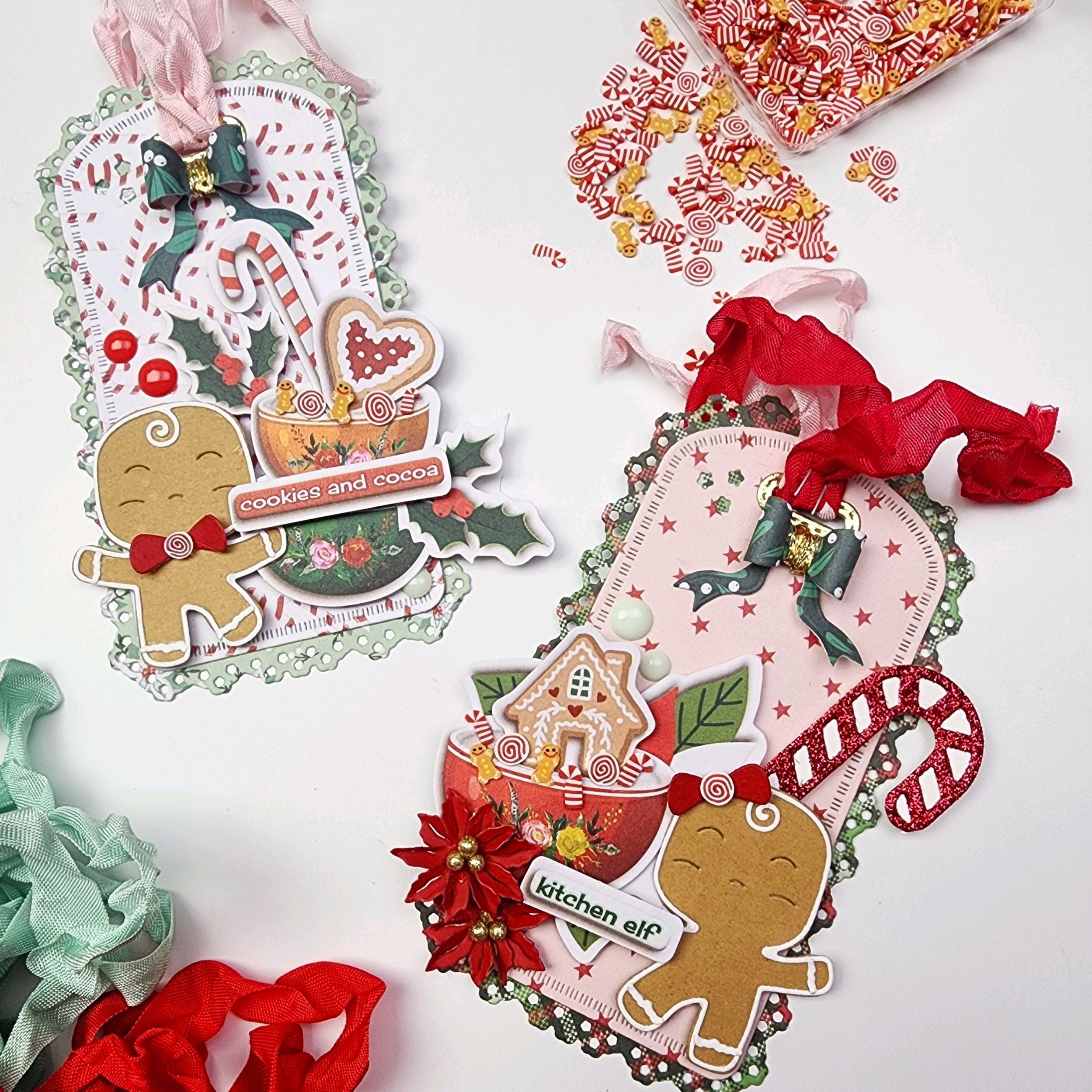 Create two different tags with this set. Includes snowflakes & mini bows