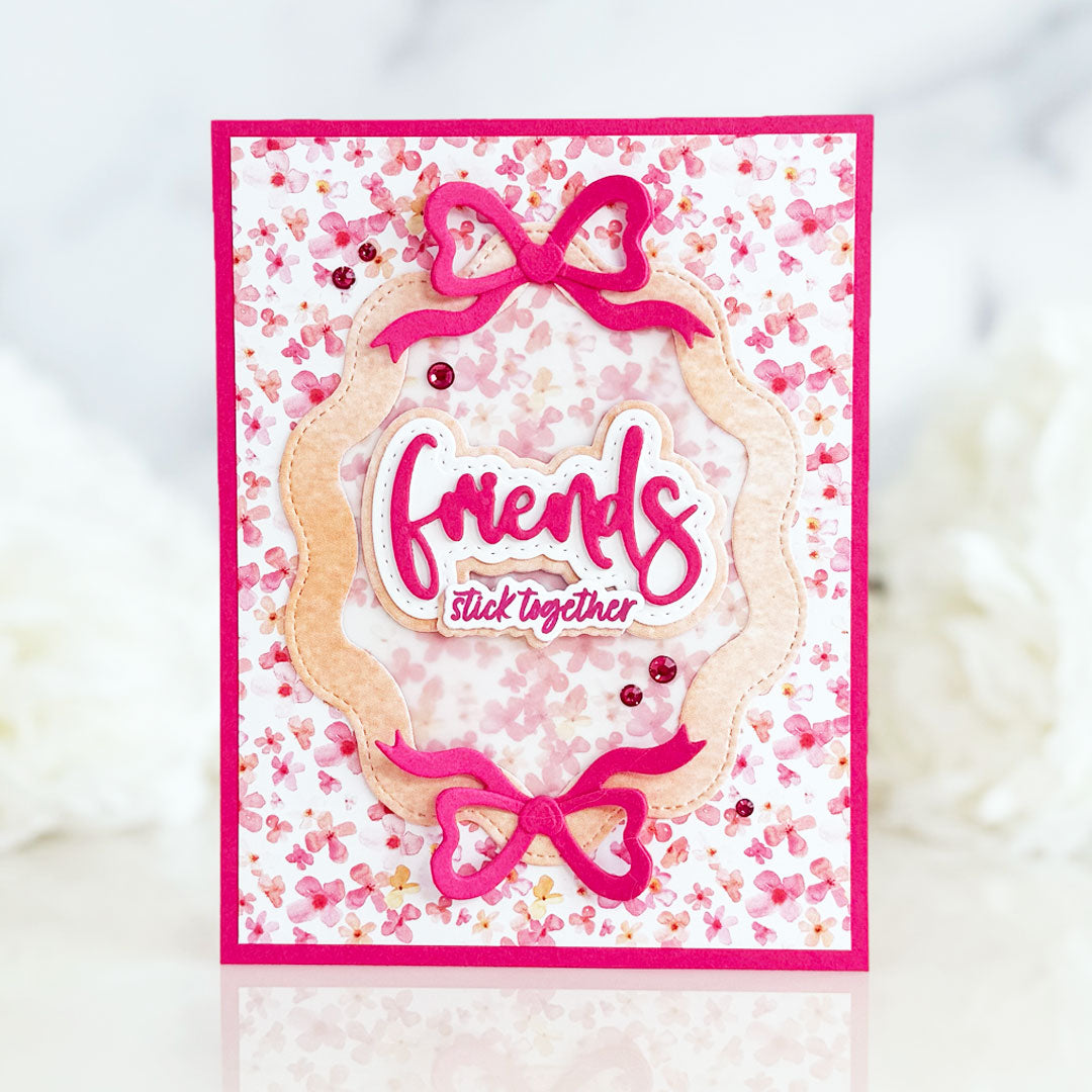 Frame your projects in style with our Ribbon Wavy Frame Die Set! This beautiful 6-piece nesting set features elegant wavy frames and a pretty coordinating bow for a soft, decorative finish. Perfect for creating shaker embellishments, tags, or layered focal points, this versatile set adds movement and charm to cards, mini albums, and scrapbook layouts.