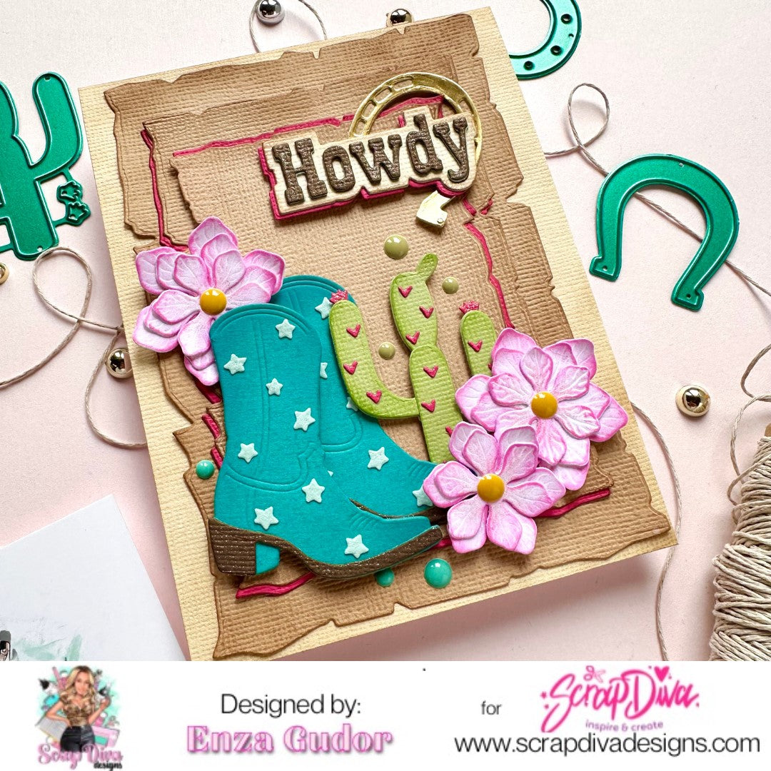 Saloon Mini Album, Sheriff Star Saker Set, 3D Double Self Closing Gift Bag, Cowboy Words, Cowboy Boots Mini Album, Cowboy Hat Mini Album, Cowboy Bundle ,Desert Rose Flower Set, Disco Ball Mini Album, Disco Sheriffs Star Mini Album, Double Stitched Fishtail Set, Western Rosette, Cowgirl Stamp set, & Recipe Stamp & Die set