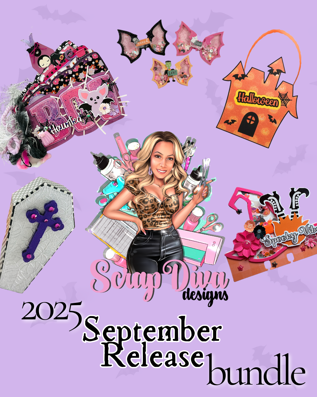 Bat Bow, Bat Shaker, Haunted house, Halloween Words 1 & 2 2025, Boo Mini Album, Coffin Stamp and die set, 3D Coffin Box, Hello Fall, Candy bag toppers large & small, A2 Card-box Halloween Add on, Cat Jelly Tote, Witch Memorydex, Voodoo Doll sentiments, Pumpkin Trio, Crossroads, 3D Sand bucket Add on