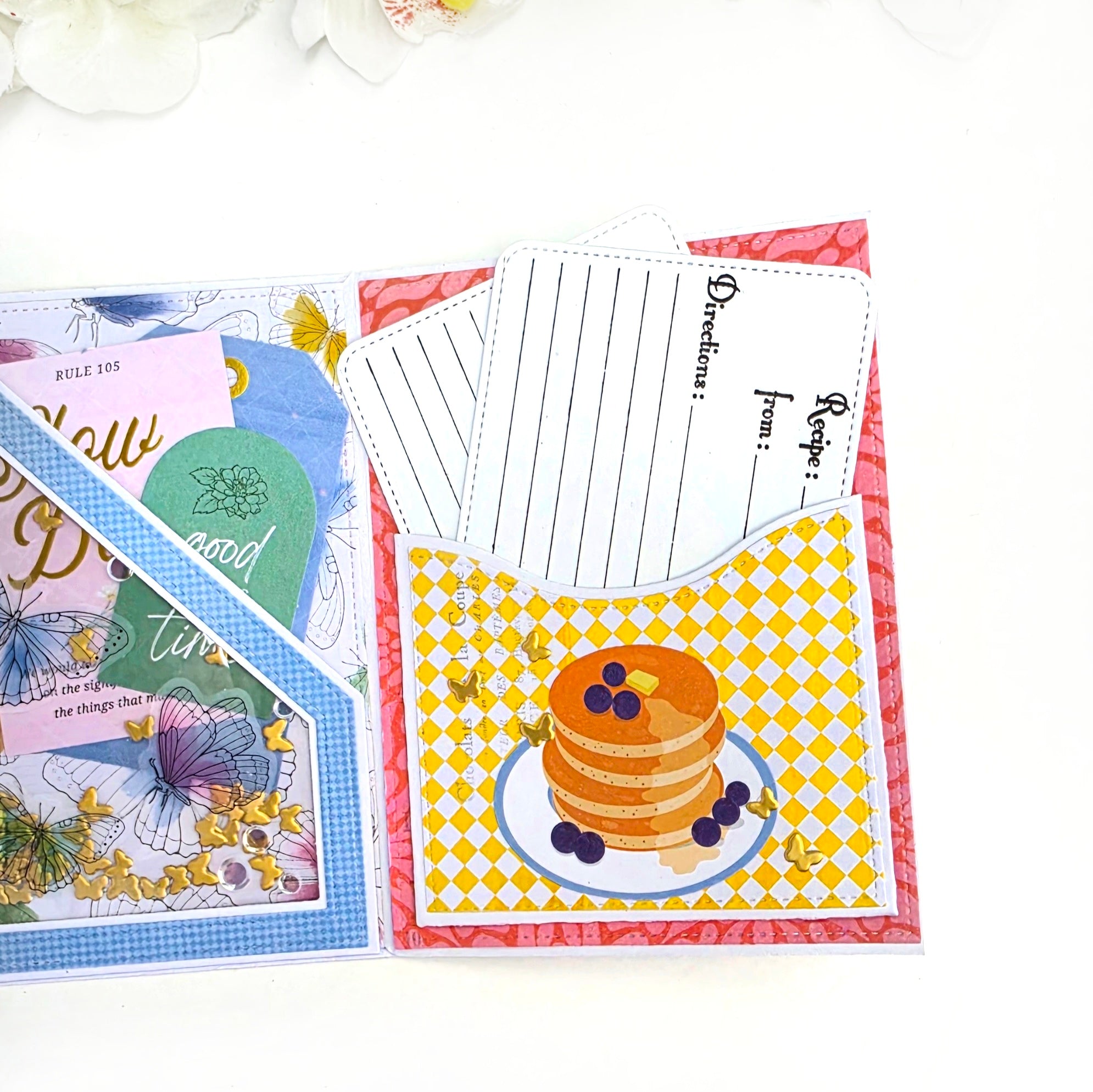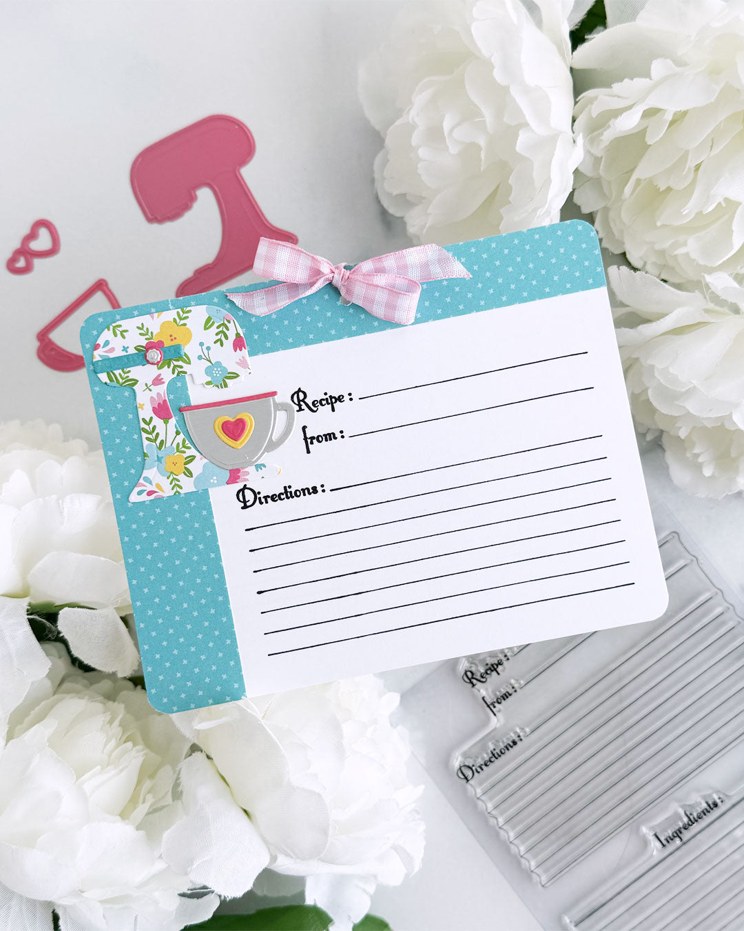 This coordinating set includes high-quality photopolymer stamps and matching dies designed to create beautiful Memorydex recipe cards. Perfect for documenting favorite meals, family recipes, and cooking inspiration.